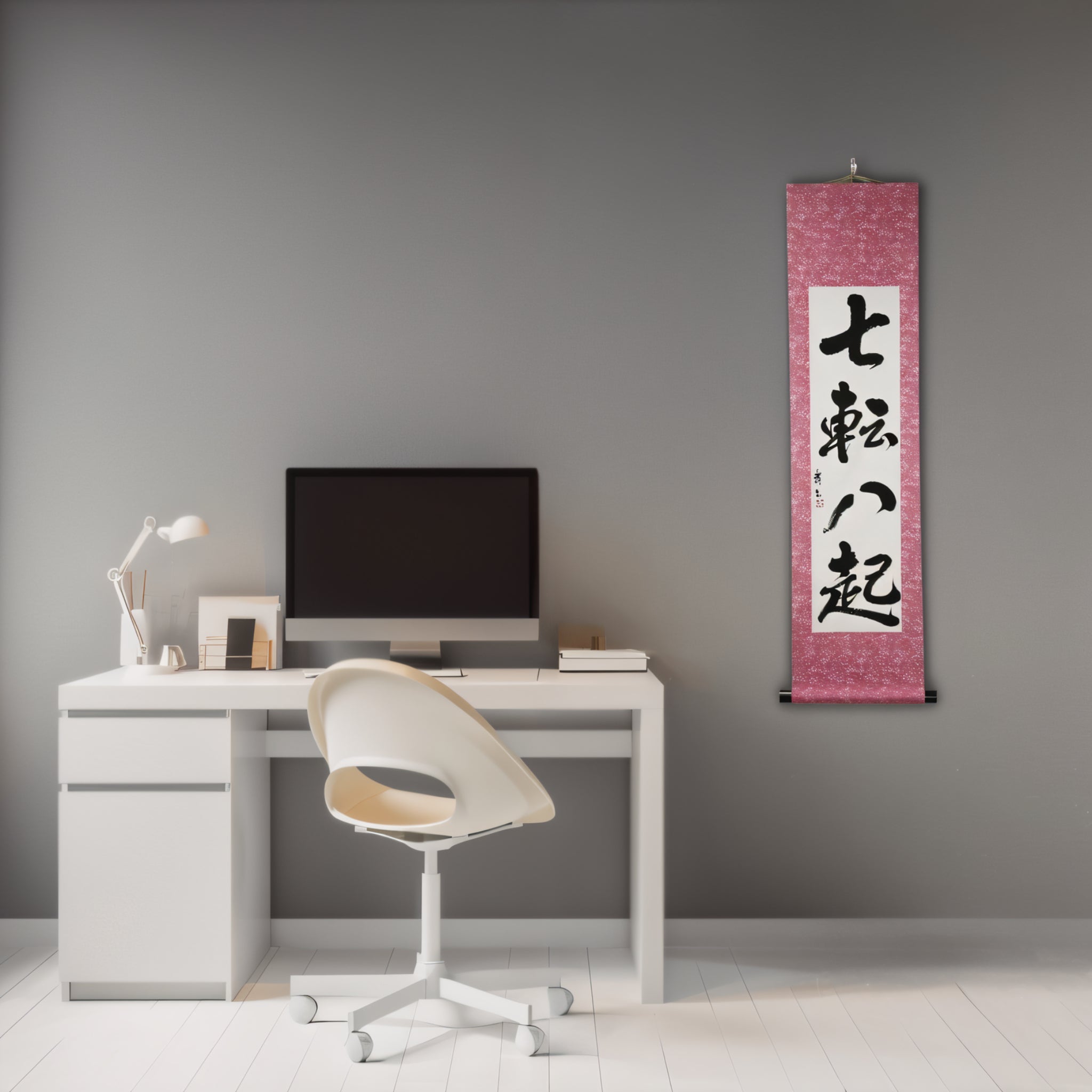 Perfect for those who admire the samurai way of life, this calligraphy scroll serves as a daily reminder: No matter how many times you fall, rise stronger — with clarity, courage, and unwavering resolve.