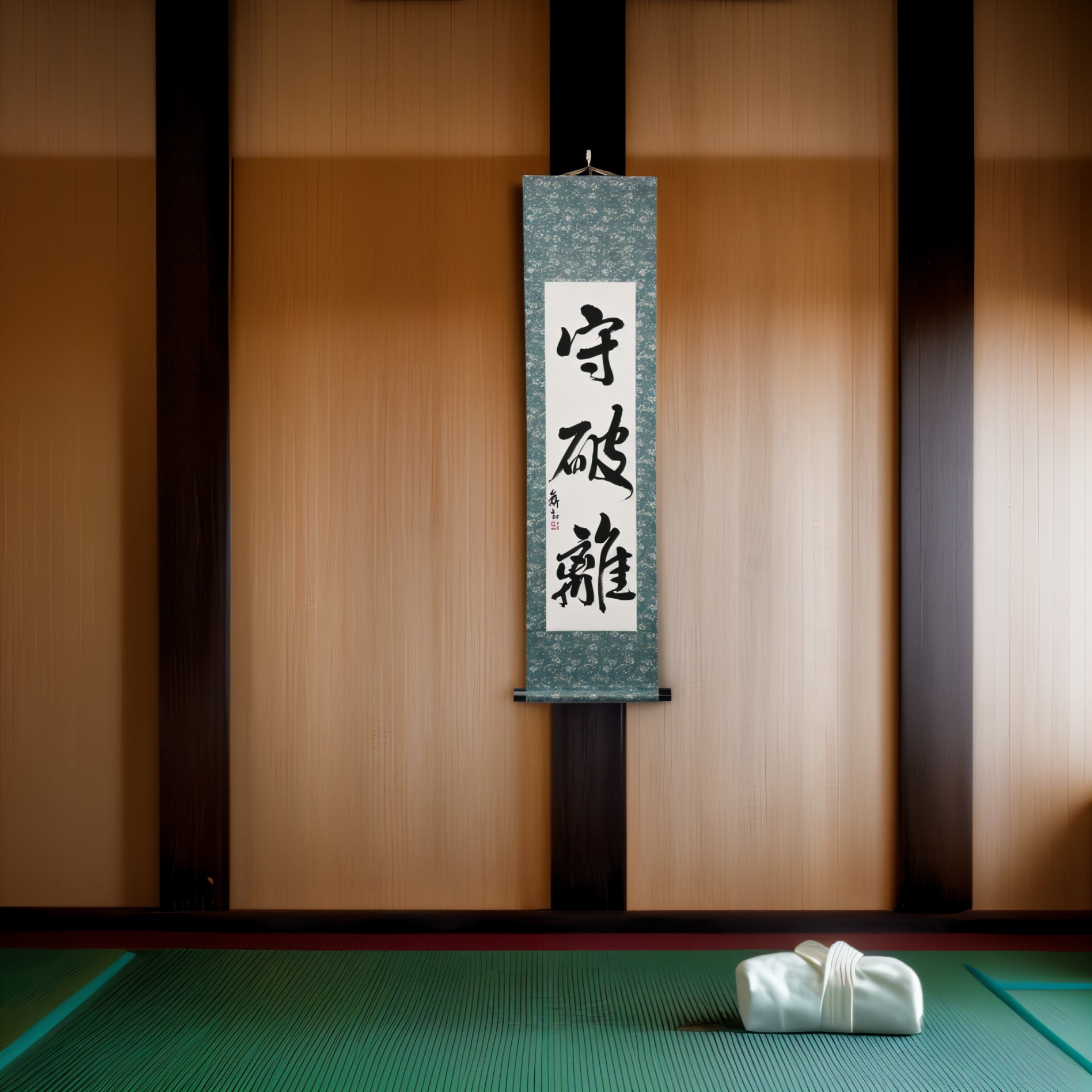This Japanese calligraphy scroll features the timeless phrase 守破離 (Shuhari) — a profound teaching that captures the path of growth and mastery in all martial arts.